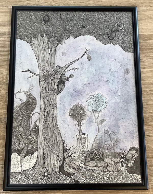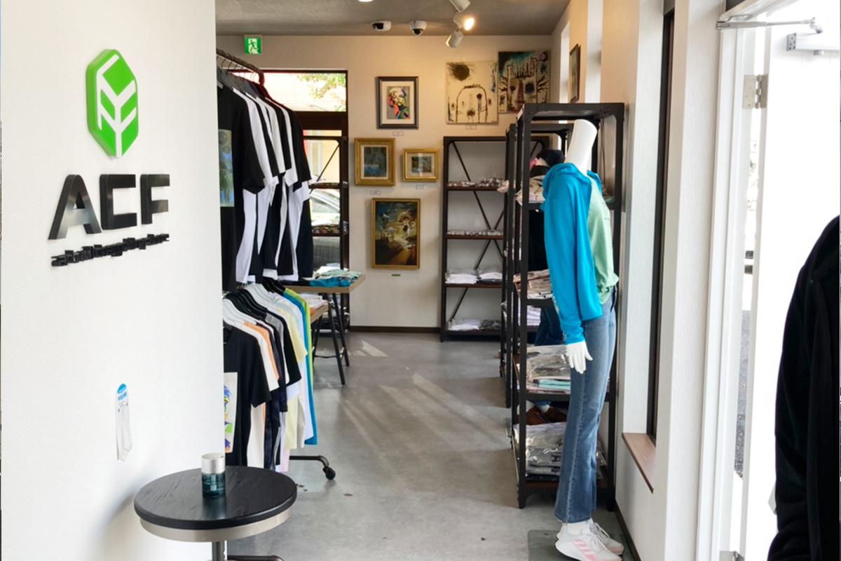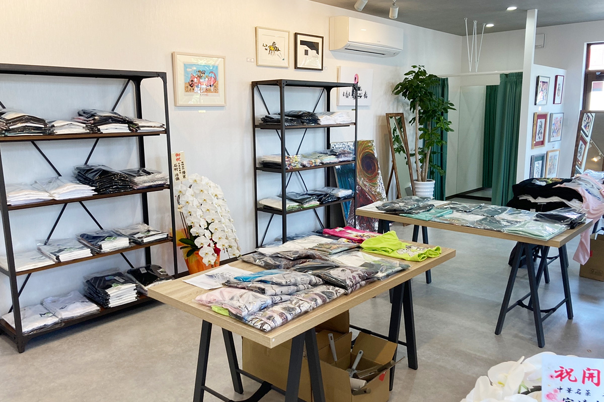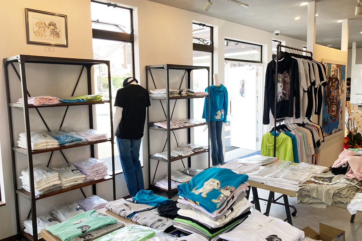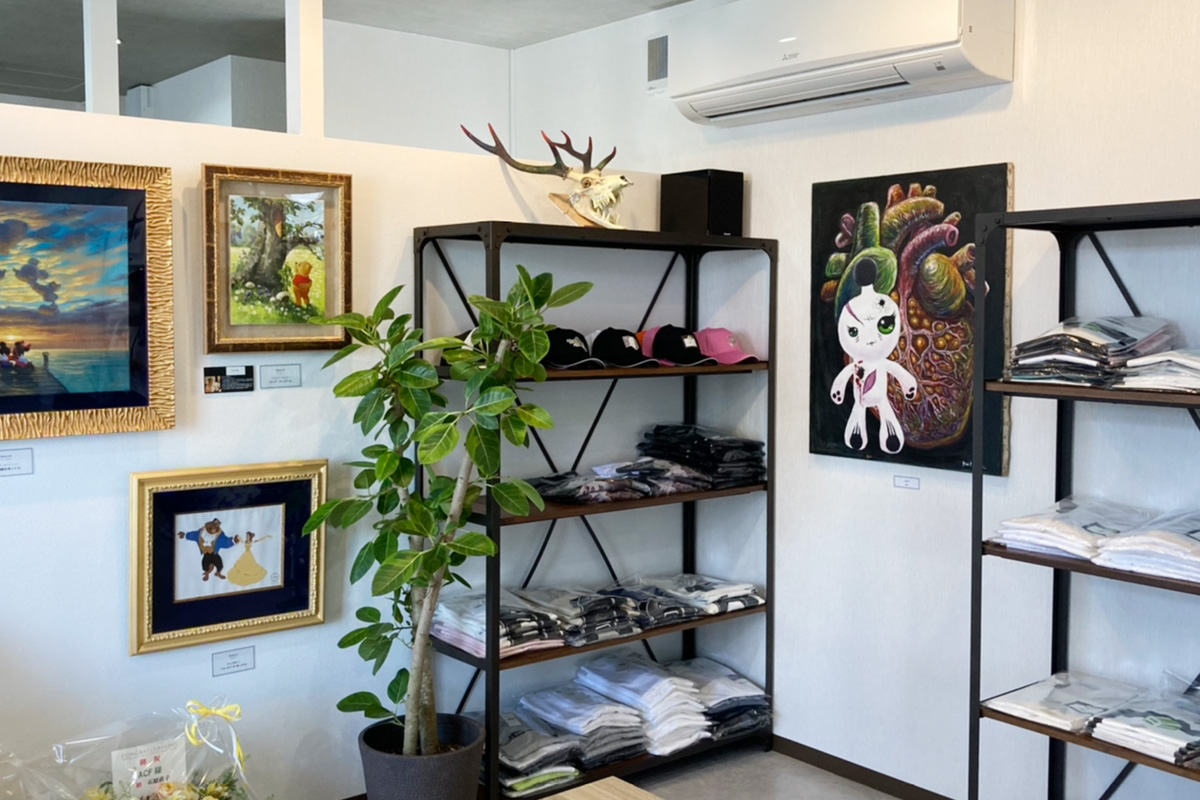 当店は、日本で初めてのビジネススタイルで絵画を描かれる一般の方とアーティスト契約を締結し、その「 絵画 」をTシャツやトレーナー等へ写し描いた作品を商品化して販売しているお店です。